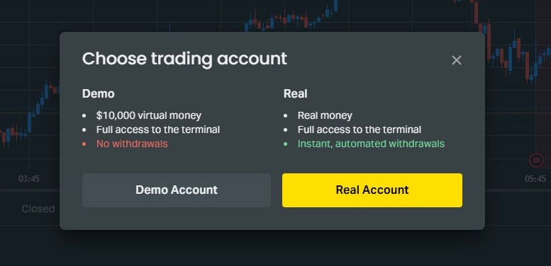 Màn hình sẽ hiện lên lựa chọn giữa tài khoản thực và tài khoản thử nghiệm. Hãy chọn “Tài khoản thực” để tiếp tục.
